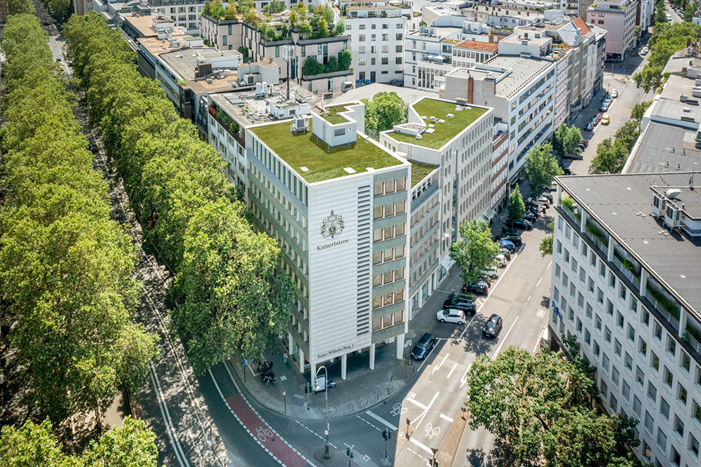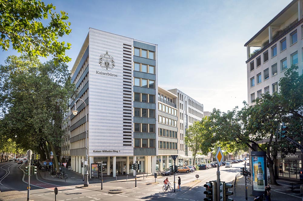 Heute ist der Kaiser-Wilhelm-Ring „die“ Bürolage in Köln. Die Nachbarschaft ist erstklassig: Banken, Versicherungskonzerne, Beratungsunternehmen und führende Möbel Flagship Stores werden flankiert von einem reichhaltigen Gastronomie- und Serviceangebot sowie Kölns ältestem Bürgerpark, dem „Stadtgarten“. So wird selbst die Mittagspause oder ein Business-Lunch zum entspannten Erlebnis.